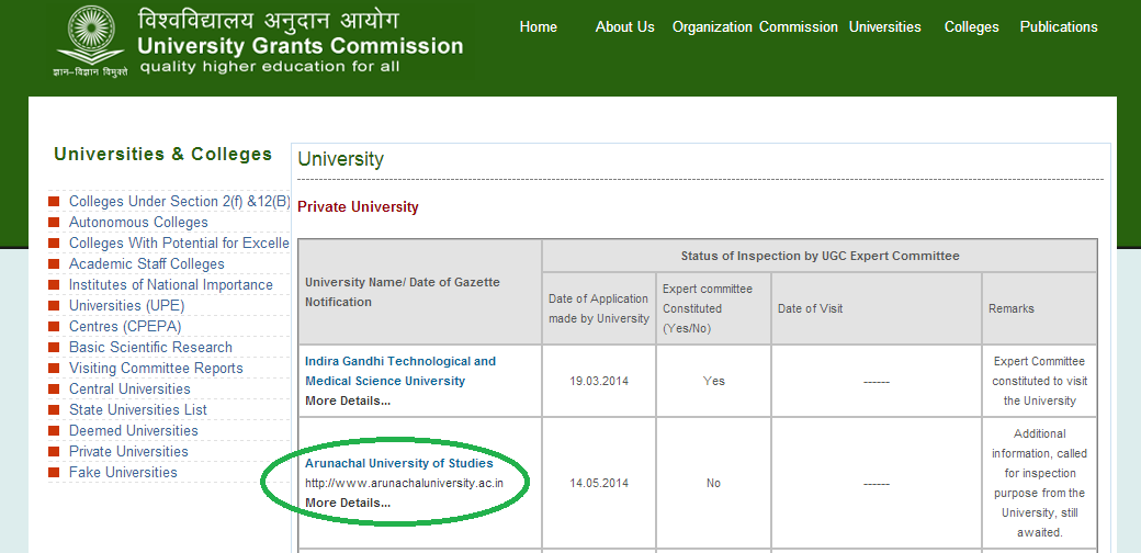 Arunachal University of Studies is a State University of Arunachal Pradesh which comes under section 2(f) of UGC Act and the University is