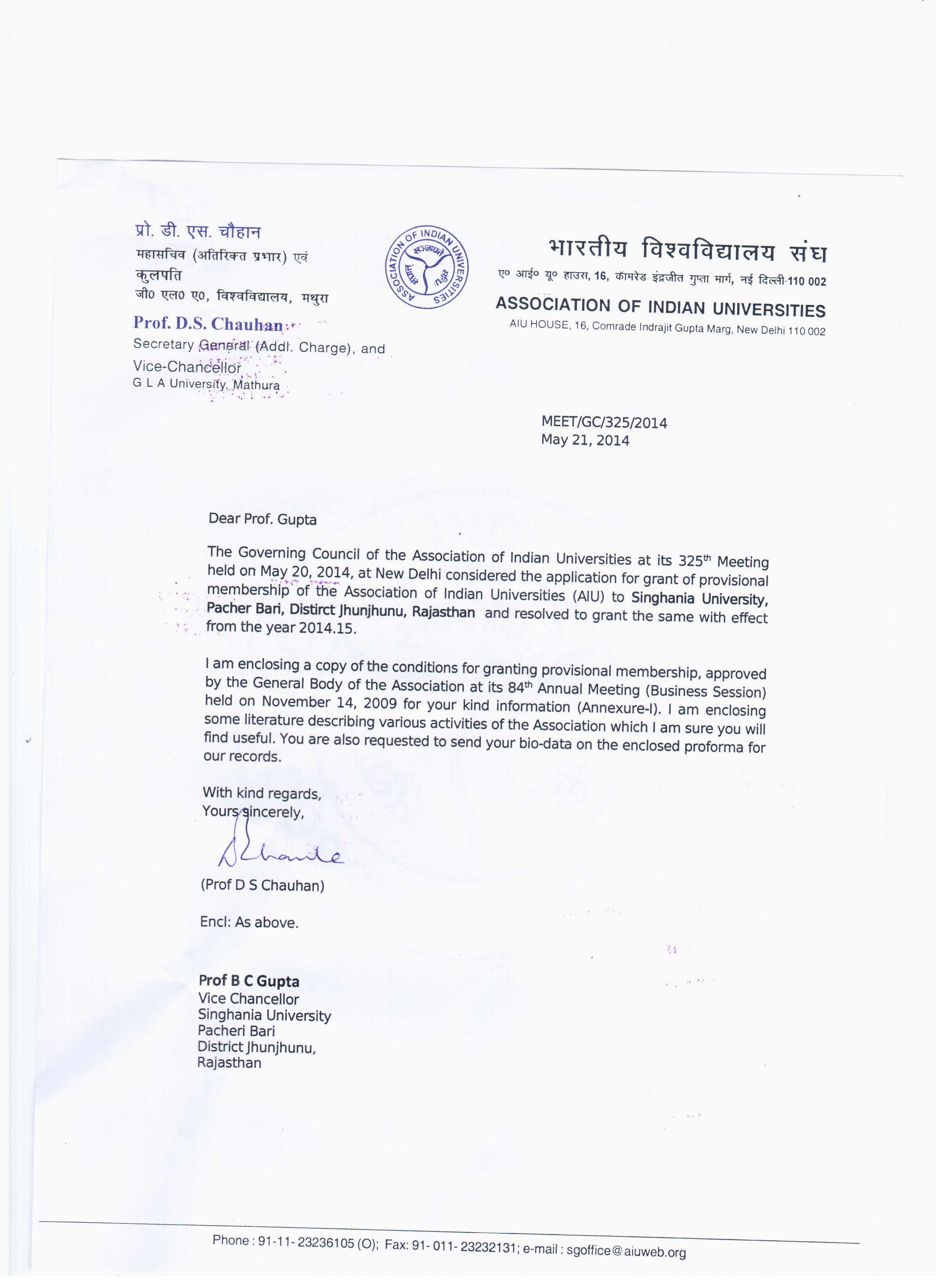 established or incorporated by or under a Central Act or a State Act. Singhnaia University Rajasthan has been established by Government